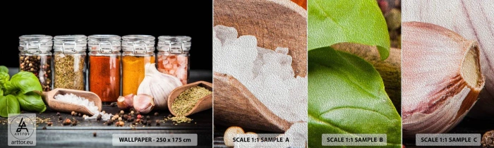 Vzorka fototapety Premium Sand - Aby mal život chuť - Gastronómia, Sušené bylinky, Korenie - 100x30 cm
