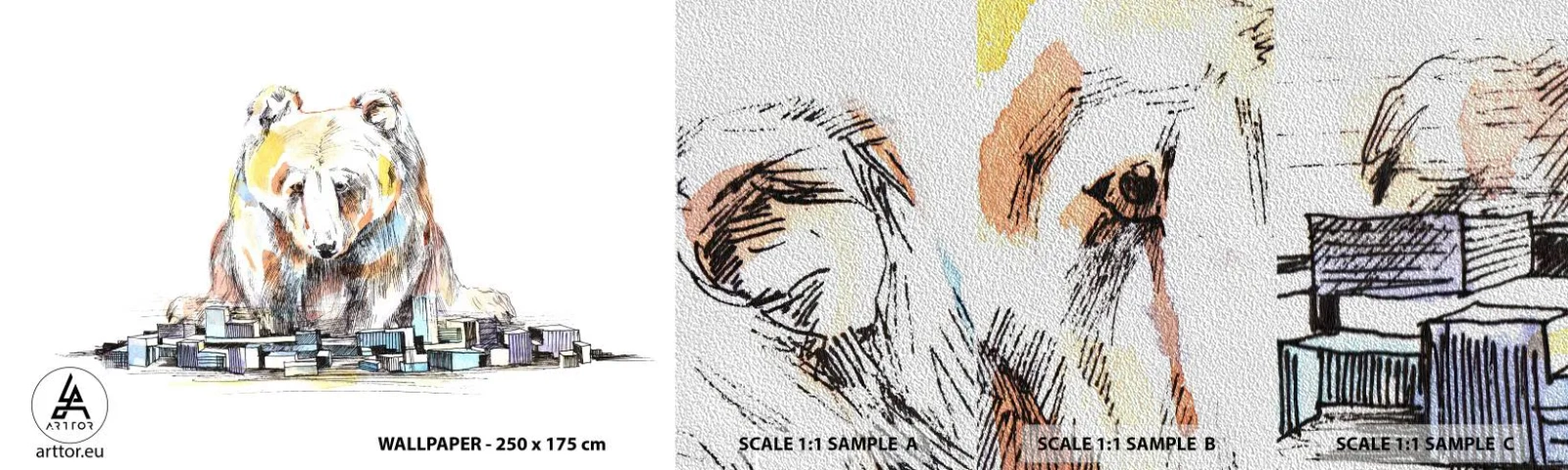 Vzorka fototapety Premium Sand - Ako sa dá takto žiť? - Zvieratá, Medveď, Grafika - 100x30 cm