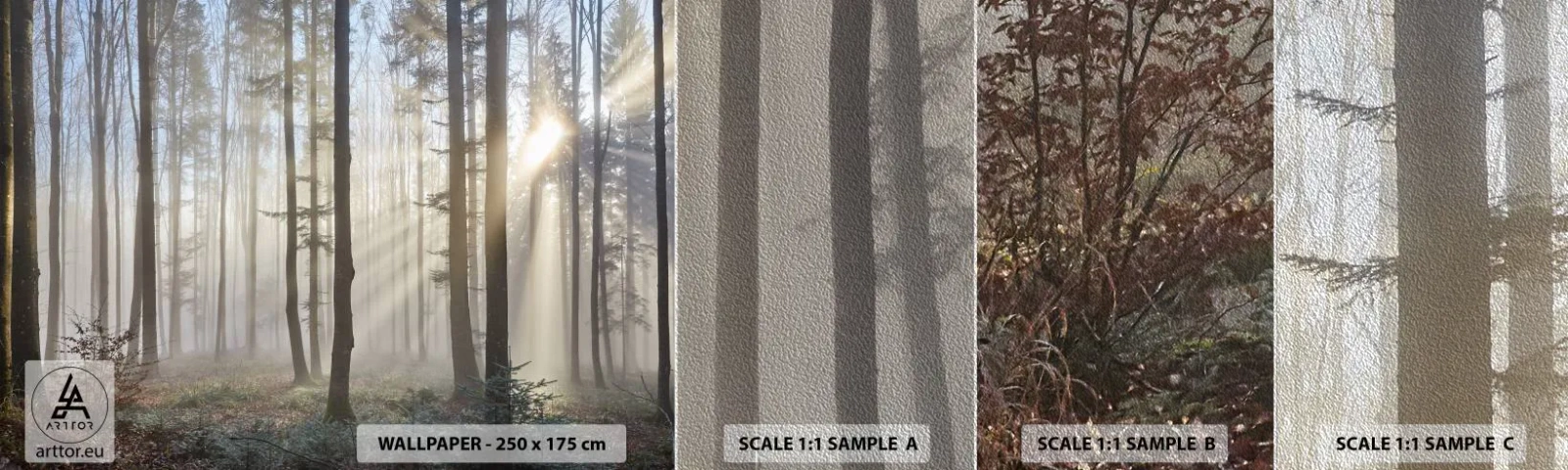 Vzorka fototapety Premium Sand - Hmla sa tiež zobudila - Krajina, les, Hmla - 100x30 cm