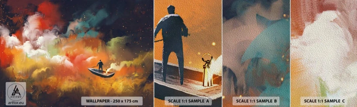 Vzorka fototapety Premium Sand - Loďou cez galaxiu - Abstrakcia, Fantázia, Výlet - 100x30 cm