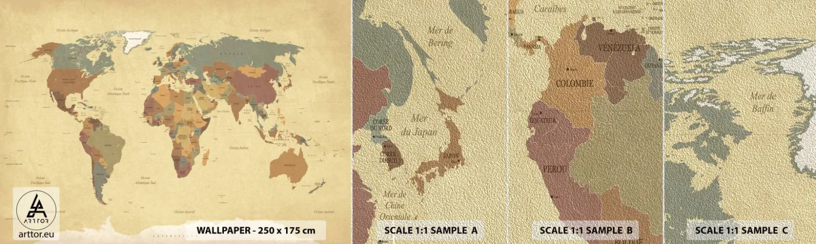Vzorka fototapety Premium Sand - Pre teba - celý svet - Mapa sveta, kontinentov, Cestuje - 100x30 cm