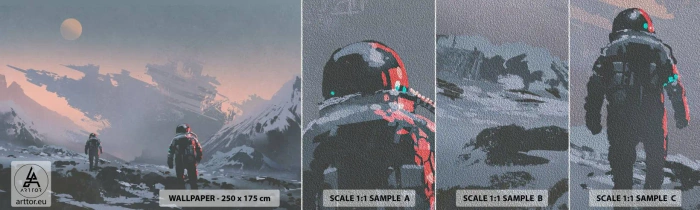 Vzorka fototapety Premium Sand - Pod neznámou hviezdou - Abstrakcia, Astronaut, kozmonaut - 100x30 cm