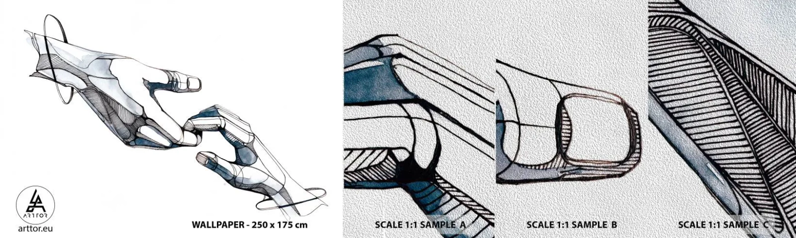 Vzorka fototapety Premium Sand - Dobré gesto - Abstrakcia, Ruky, Grafika - 100x30 cm