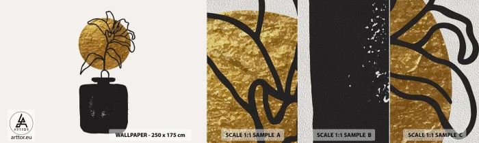 Vzorka fototapety Premium Sand - Krása, ktorá má cenu zlata - Váza, Kvety, Minimalizmus - 100x30 cm