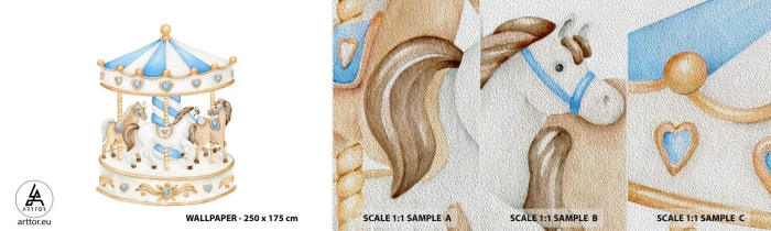 Vzorka fototapety Premium Sand - Sladké detstvo - Kone, Kolotoč, Detský - 100x30 cm