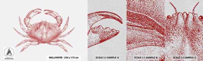 • Krab, Morské plody, Mušle, Námorné, Vintage a retro, Zvieratá, Do kancelárie, Do pracovne, Do jedálne, Do kúpeľne, Do predsiene, Do obývačky, Do spálne, Biela, červená, Vodorovný