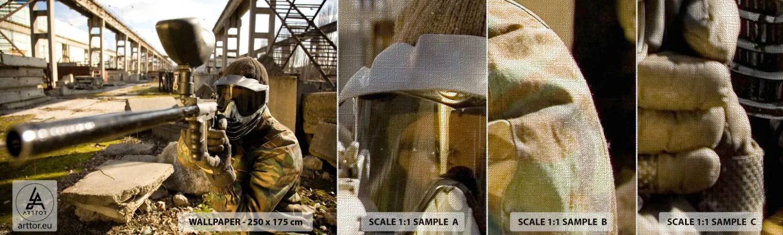 Vzorka fototapety Premium Canvas - Aj vy sa môžete stáť hrdinom - Paintball, Šport, Vojenské - 100x30 cm