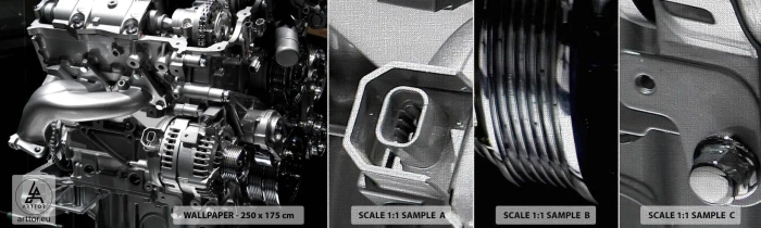 Vzorka fototapety Premium Canvas - Kovový, krásny, silný - Automobilový priemysel, Motor auta, 3D - 100x30 cm