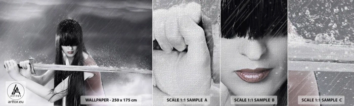 Vzorka fototapety Premium Canvas - Pekná a nebezpečná - Žena, Meč, Vojenské - 100x30 cm