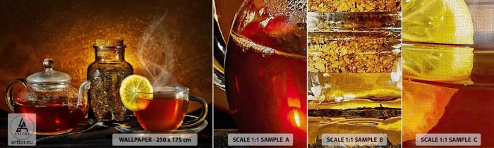Vzorka fototapety Premium Canvas - V štýle holandských majstrov - Gastronómia, Čaj, Šálka na čaj - 100x30 cm