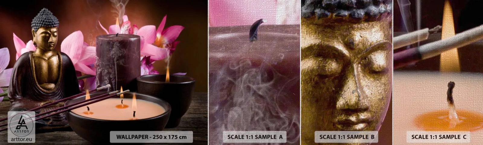 Vzorka fototapety Premium Canvas - Očistiť myseľ, upokojiť telo - Budha, Náboženstvo, Kvety - 100x30 cm