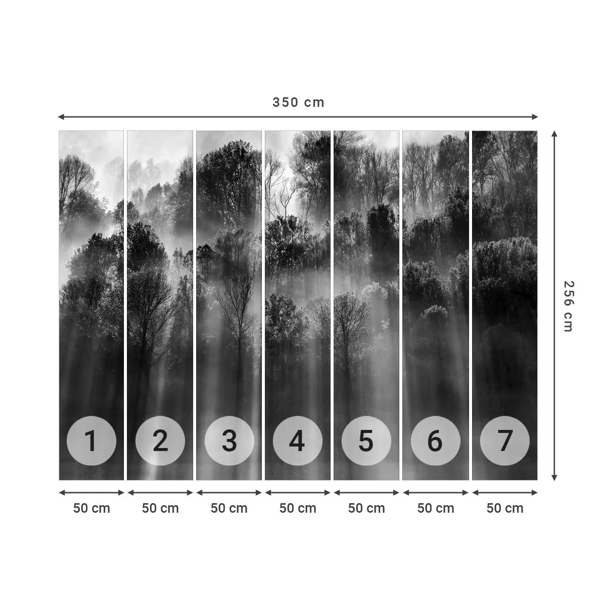 Fototapeta Standard Eco - V lúčoch svetla - Krajina, les, Čierna a biela - 350x256 cm