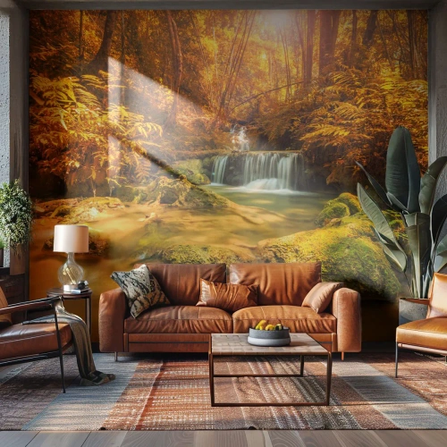 Samolepiaca Fototapeta Deluxe Sticker - Lesný vodopád v zlate - Krajina, Vodopád, Thajsko - 200x140 cm