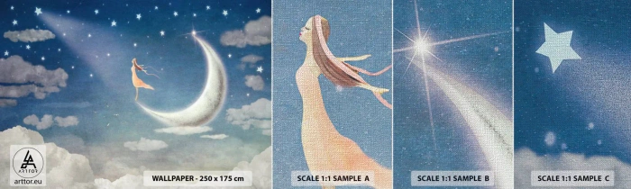 Vzorka fototapety Premium Canvas - Modrá koketa - Abstrakcia, Pre deti, Mesiac - 100x30 cm