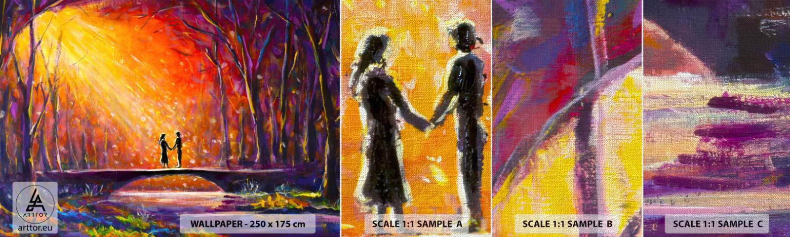 Vzorka fototapety Premium Canvas - Nebo ich tiež miluje - Abstrakcia, Pár milencov, Krajina - 100x30 cm