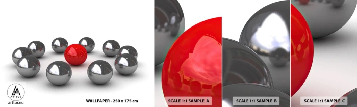 Vzorka samolepiacej fototapety Deluxe Sticker - Kruh v striebornej a červenej - Abstrakcia, 3D, Okrúhle lopty - 100x30 cm