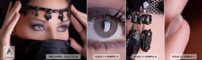 Vzorka samolepiacej fototapety Deluxe Sticker - Orientálne zvodné tajomstvo - Žena, Oči, Kultúra - 100x30 cm