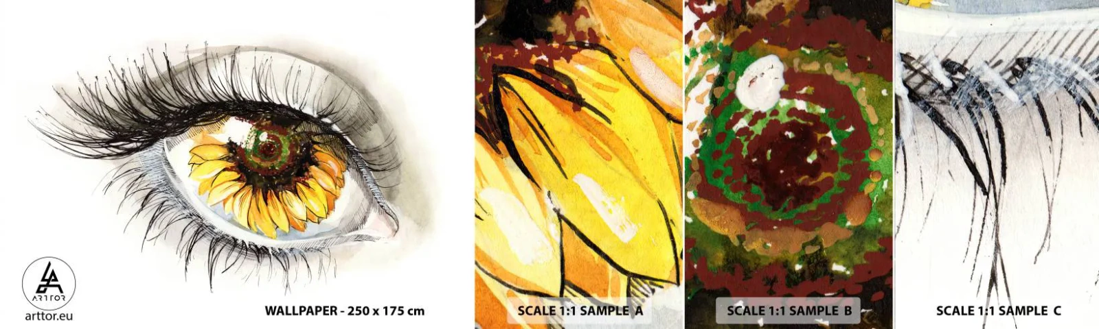 Vzorka samolepiacej fototapety Deluxe Sticker - Pohľad žeravý ako leto - Abstrakcia, Grafika, Oko - 100x30 cm