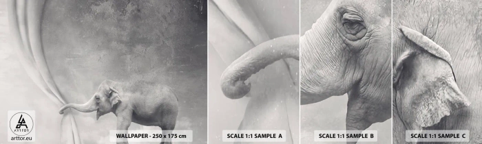 Vzorka samolepiacej fototapety Deluxe Sticker - Odhaliť tajomstvo - Abstrakcia, Slon, Grafika - 100x30 cm