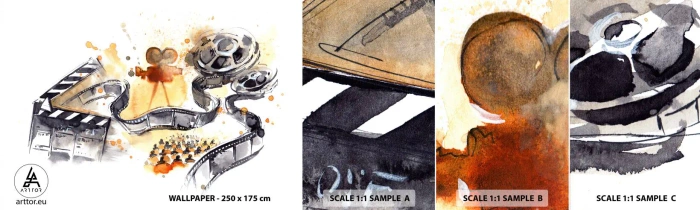Vzorka samolepiacej fototapety Deluxe Sticker - V krajine snov - Filmový projektor, Filmový kotúč, Kinematografia - 100x30 cm