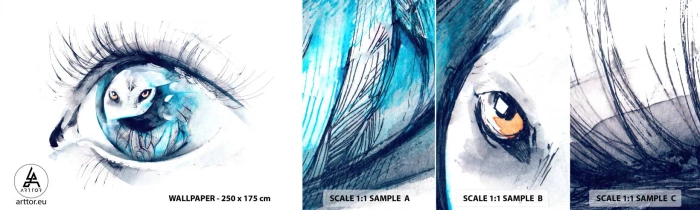Vzorka samolepiacej fototapety Deluxe Sticker - Z očí do očí s divočinou - Abstrakcia, Oko, Sova - 100x30 cm