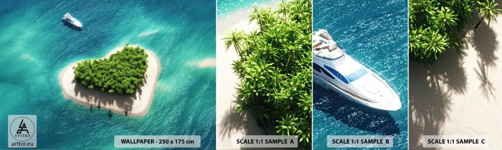 Vzorka samolepiacej fototapety Deluxe Sticker - Milujem leto - Krajina, Ostrov V Oceáne, Jachta - 100x30 cm