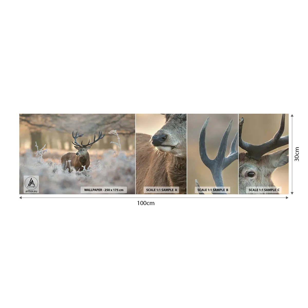 Vzorka samolepiacej fototapety Deluxe Sticker - Svieže ráno - Krajina, Jeleň, Zvieratá - 100x30 cm