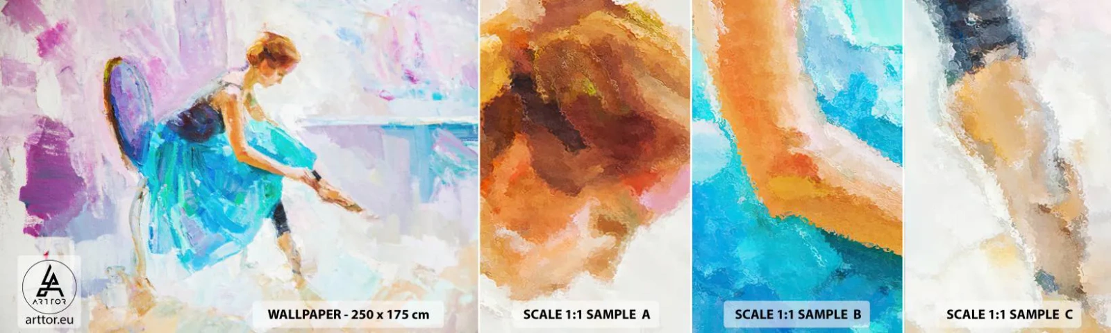 Vzorka samolepiacej fototapety Deluxe Sticker - Nevyslovená vďaka, jemné kúzlo - Balerína, Tancujte, balet - 100x30 cm