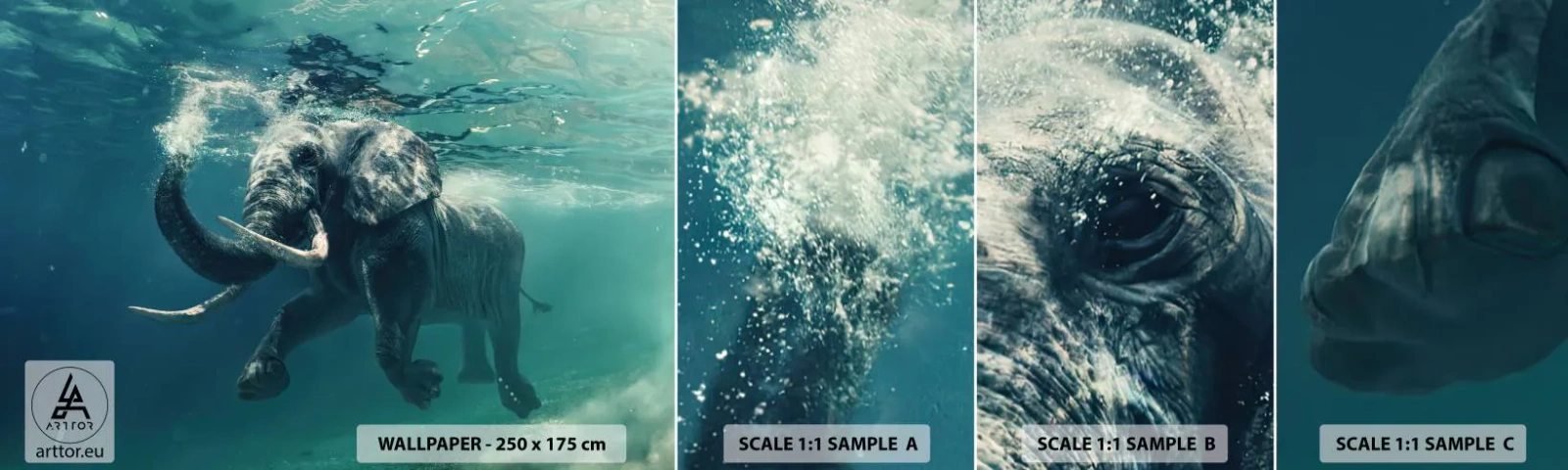 Vzorka samolepiacej fototapety Deluxe Sticker - Všetci radi plávajú - Abstrakcia, Slon, Kus - 100x30 cm