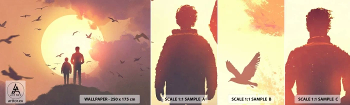 Vzorka samolepiacej fototapety Deluxe Sticker - So slnkom tvári v tvár - Abstrakcia, Fantázia, Kus - 100x30 cm