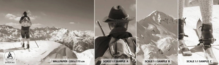 Vzorka samolepiacej fototapety Deluxe Sticker - Rovnaké hory - Krajina, hory, Lyžiar - 100x30 cm