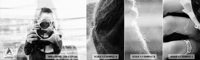 Vzorka samolepiacej fototapety Deluxe Sticker - Tvorca a materiál - Abstrakcia, Fotograf, Žena - 100x30 cm