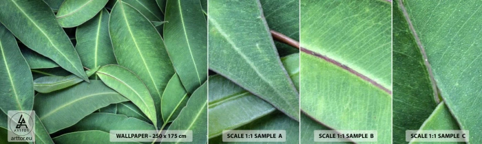 Vzorka samolepiacej fototapety Deluxe Sticker - Šťavnaté a svieže - Listy, Eukalyptus, Príroda - 100x30 cm