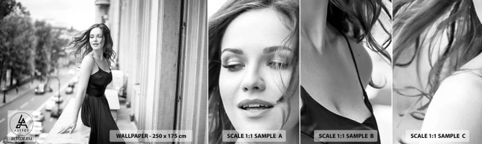 Vzorka samolepiacej fototapety Deluxe Sticker - Určite Parížanka - Žena, Mesto, Architektúra - 100x30 cm