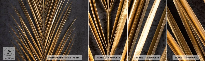 Vzorka samolepiacej fototapety Deluxe Sticker - Zlato trópov - Palmový list, Kus, Abstrakcia - 100x30 cm