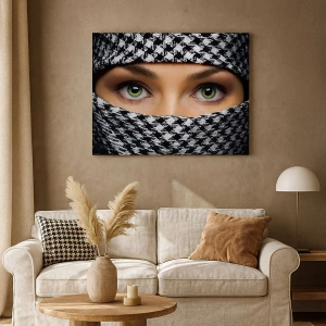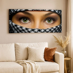 Obraz na plátne - Portrét zahalenej zelenookej krásky - 45x80 cm