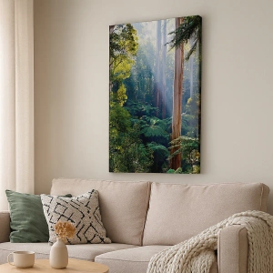 - Táto tlač na plátne zobrazuje tropický les osvetlený slnečným svetlom a vytvára pokojnú a relaxačnú atmosféru. Ideálna do interiérov inšpirovaných prírodou.