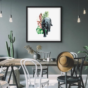 - Tento plagát s čiernym panterom na pozadí tropickej vegetácie zachytáva divokú a exotickú atmosféru. Táto umelecká kompozícia dokonale dopĺňa moderné interiéry.