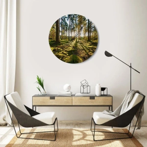 - Nástenné hodiny s motívom lesa a slnečného svetla presvitajúceho cez vysoké stromy, ideálne do interiérov inšpirovaných prírodou.