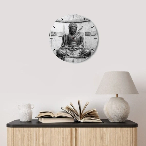 Nástenné hodiny - Pri zdroji pokoja - Socha Budhu v monochromatickom štýle na stene