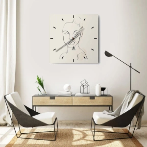 Nástenné hodiny - Minimalistický portrét ženskej tváre - 30x30cm - Obrys zmyselnosti - Moderná nástenná dekorácia do obývacej izby, kuchyne a spálne ARTTOR