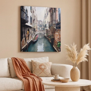 Obraz na plátne - Benátska krajina s gondolou a mostíkom - 45x80 cm