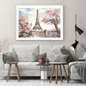 Plagát v bielom ráme - Aprílová prechádzka Parížom - 40x30 cm