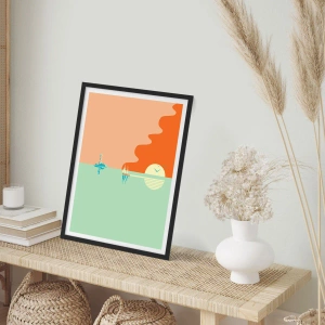 - Tento plagát zobrazuje minimalistický západ slnka s plachetnicou v pozadí. Teplý a harmonický motív, ideálny do pokojných a moderných interiérov.