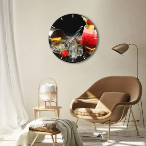 Hodiny sú vyrobené z bezpečného skla s hrúbkou 4mm. Technológia výroby hodín je v súlade s triedou bezpečnosti 2B2 podľa normy PN-EN 12600:2004, ktorá garantuje odolnosť proti nárazom. Hodiny na skle sú pripravené na zavesenie – majú kovový záves upevnený na zadnej strane hodín a penovú dištančnú podložku, ktorá upravuje vzdialenosť hodín od steny. Hodiny majú tichý plávajúci mechanizmus napájaný 1,5 V batériou - AA batéria (batéria nie je súčasťou balenia).