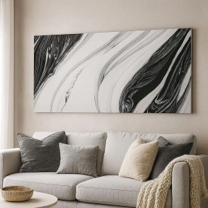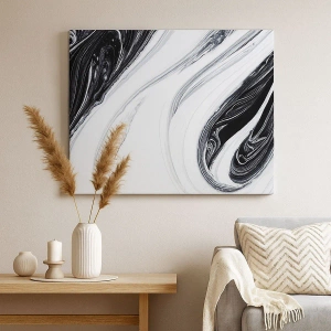 - Tento obraz zobrazuje čiernobielu abstrakciu s dynamickými líniami a vírmi. Jeho minimalistická a moderná kompozícia prináša do interiérov jasnosť a harmóniu. Je to perfektná dekorácia pre milovníkov súčasného umenia.