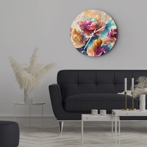 „Farebná nádhera kytice“ nie sú len dekoratívne hodiny, ale aj spôsob, ako dodať interiéru výrazný akcent. Ich farebný štýl a kvetinový motív zapadajú do najnovších trendov v interiérovom dizajne a prítomnosť hodín na skle im dodáva moderný vzhľad a estetiku na najvyššej úrovni.