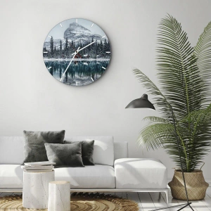 Nástenné hodiny - Canadian Retreat - Zimná krajina s jazerom, lesom a horou v pozadí