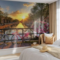 Fototapeta Premium Sand - Holandská atmosféra - Mesto, Amsterdam, Bicykel - 100x70 cm