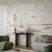 Fototapeta Premium Sand - Náčrt letných spomienok - Grafika, pobrežie, Maják - 100x70 cm